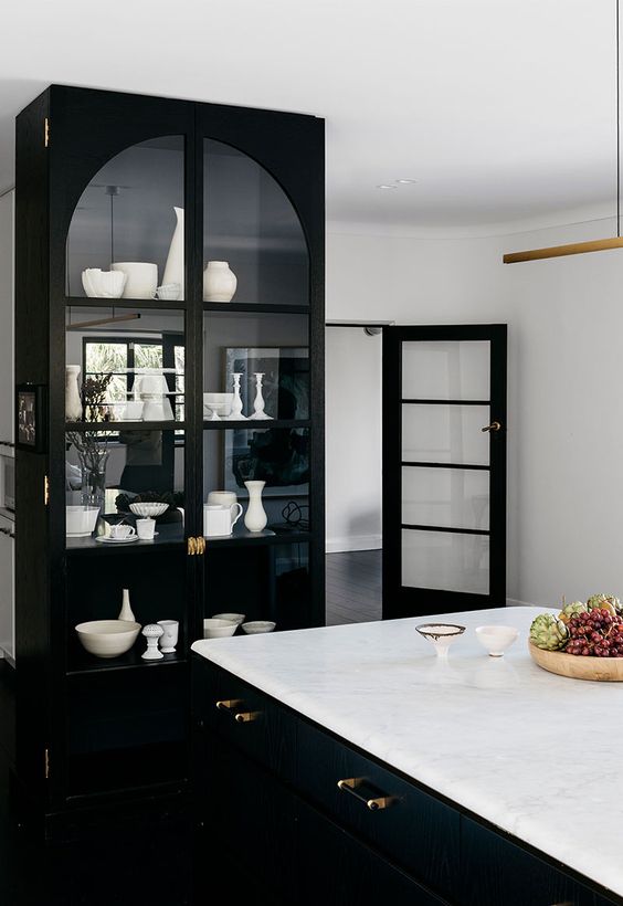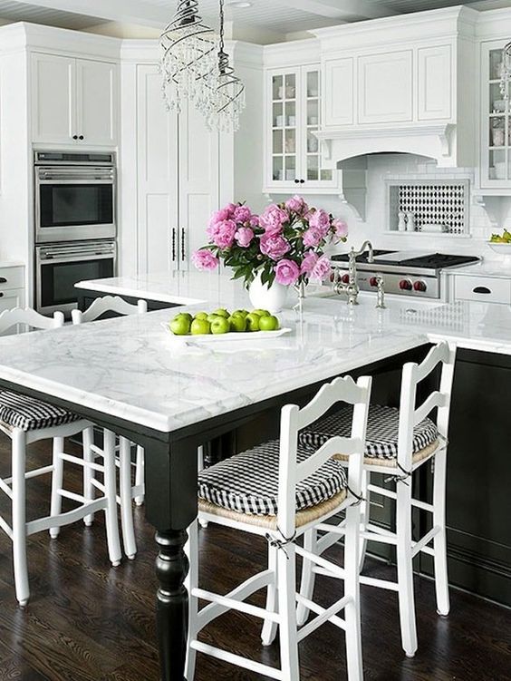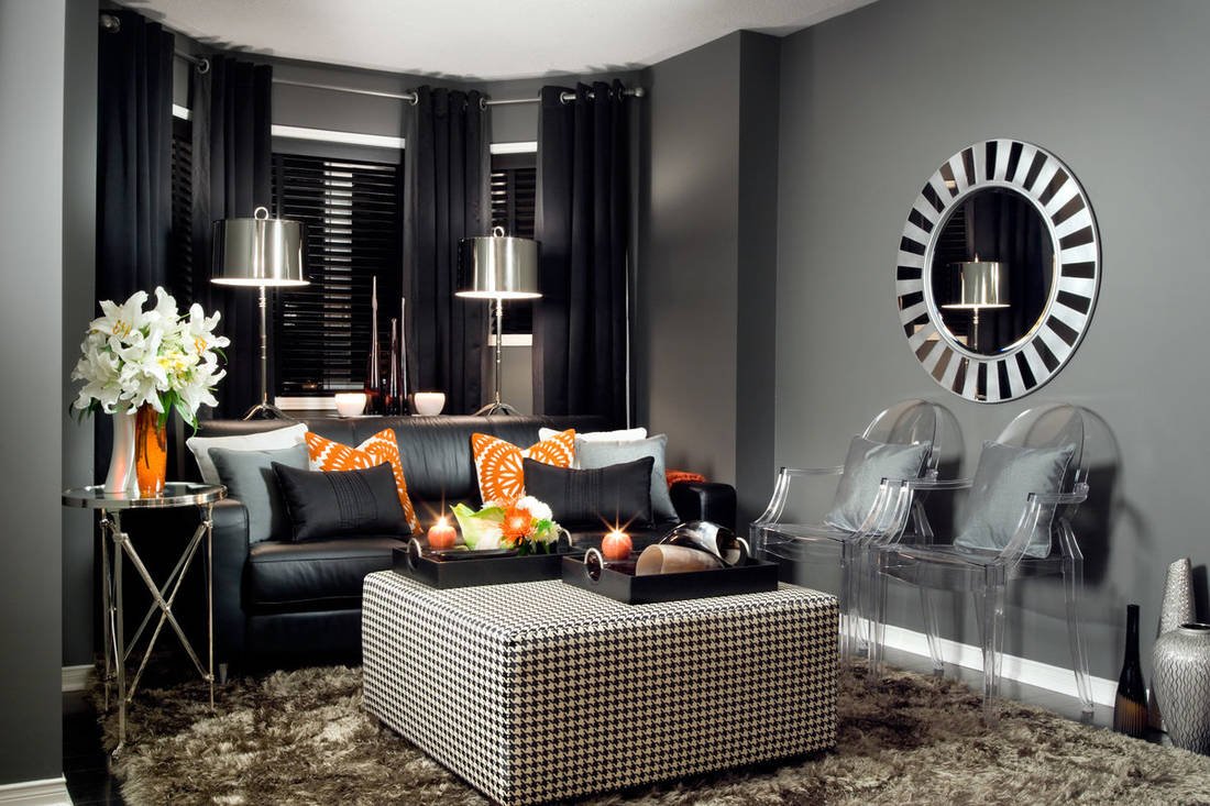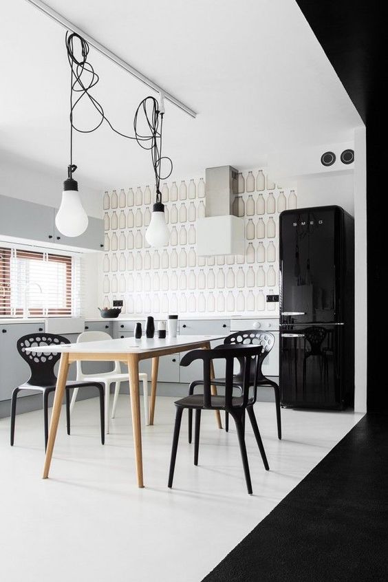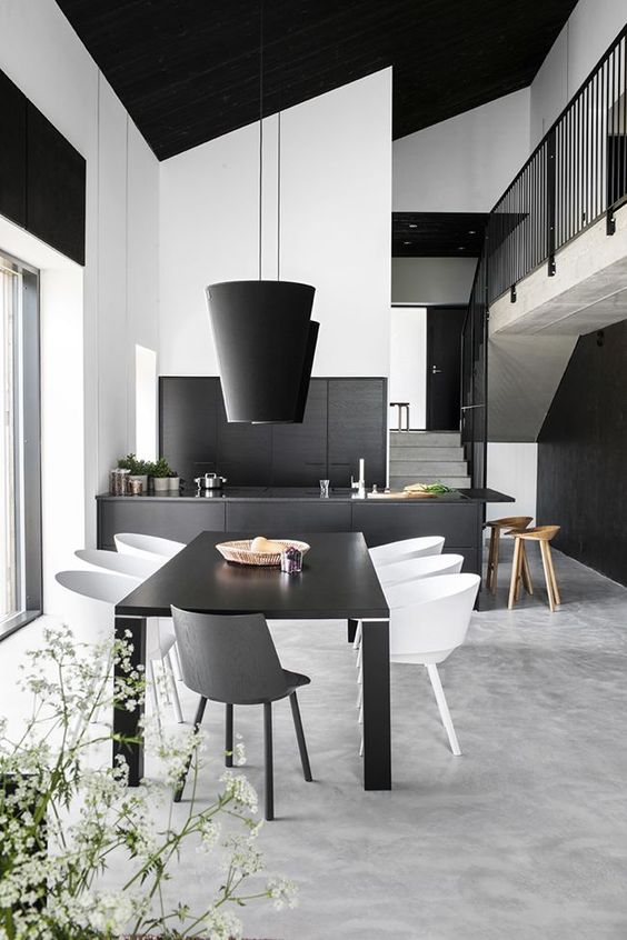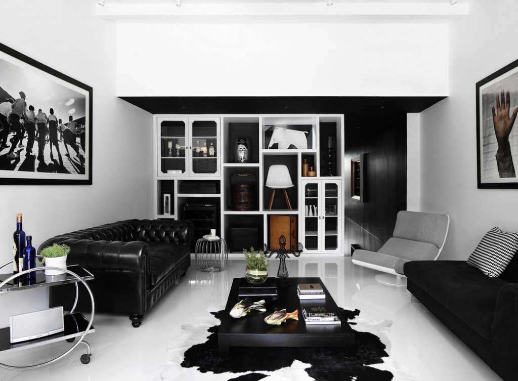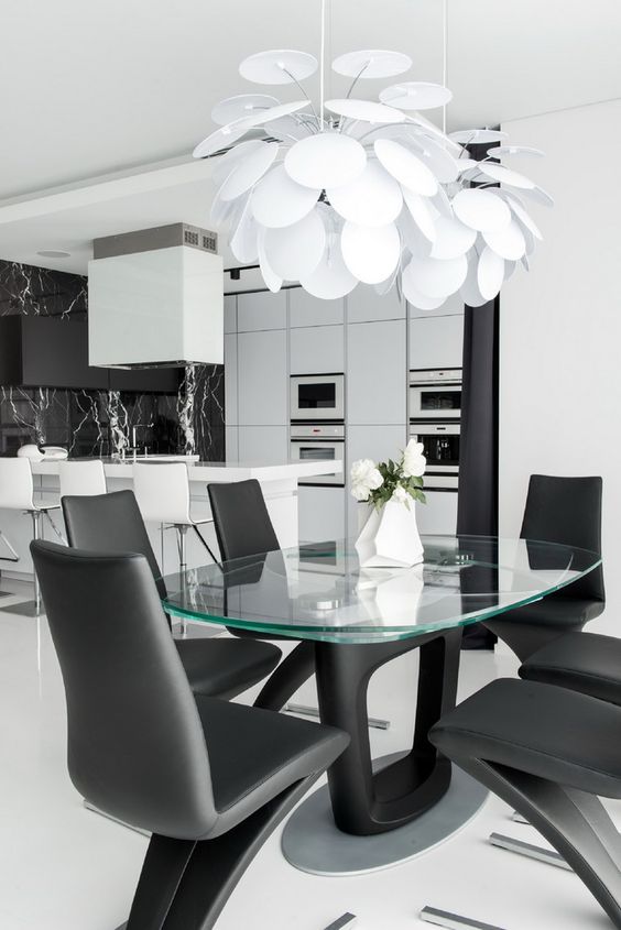 В интерьере должно быть как можно больше белого цвета. При белых стенах шикарно смотрится черного цвета мебель. Комната получится стильной, и в ней будет приятно находиться. Очень красиво может смотреться черно-белая мебель, черная и белая посуда.