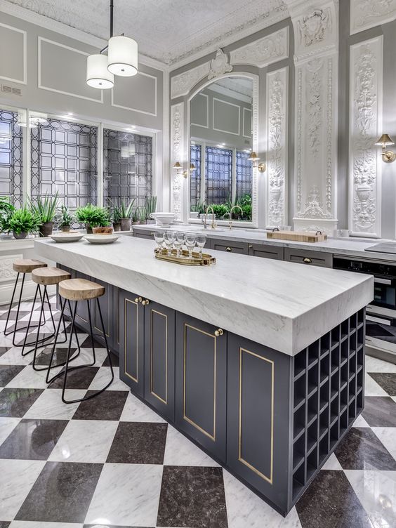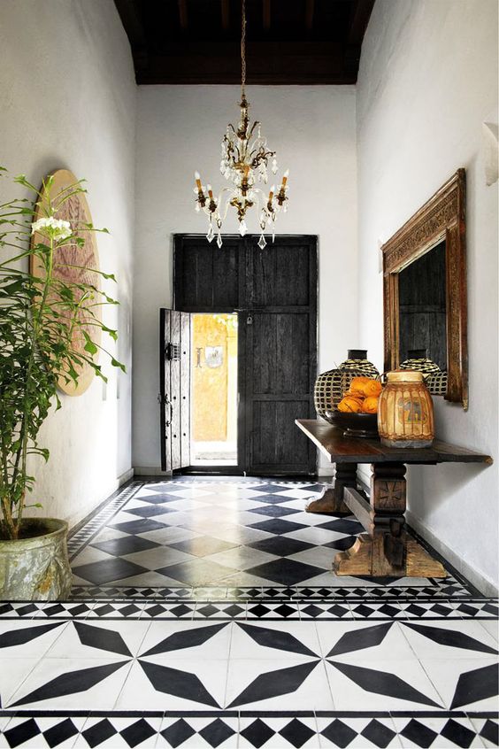 Черный и белый отлично дополняют друг друга. Если вы хотите получить оригинальное и практичное напольное покрытие, то используйте рисунок шахматной доски. Черные и белые квадраты создадут не только яркий рисунок на полу, но и помогут сделать не такой заметной пыль и грязь.
