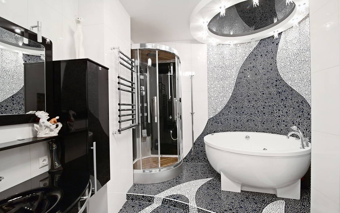 Только представьте себе черный благородный кафель на стенах и сияющую первозданной белизной ванную и умывальник. Конечно же, такое сочетание приведет в восторг и умудренных опытом ценителей дизайна и новичков.