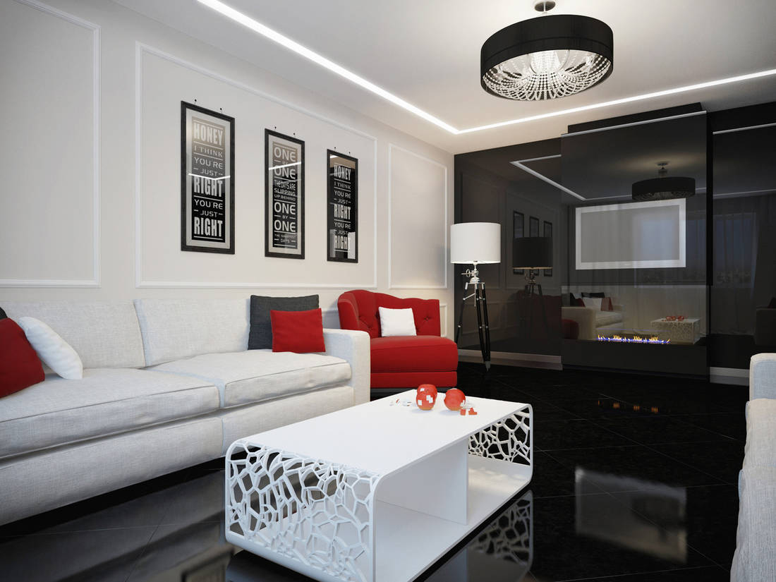 При оформлении интерьера в черно-белых тонах нужно учесть, что торжественно черный, если он преобладает в интерьере, может действовать угнетающе на психику. . Белый же, в свою очередь, может создавать при своем обилии больничные ассоциации и вызывать скуку. А вот контраст этих двух цветов может быть удивительно элегантным, но, опять-таки, при умеренном их применении и наличии небольшого объема других колористических решений.