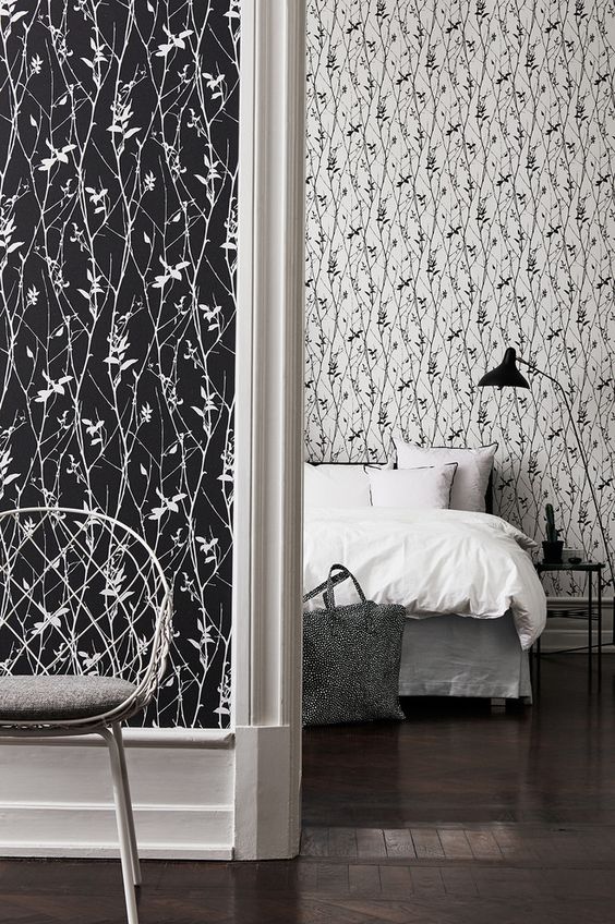Современный рынок предлагает широкий ассортимент обоев с лаконичными черно-белыми рисунками на любой вкус. На полу стоит постелить плитку в шахматном порядке. Чтобы смягчить цвет, дизайнеры используют ковролин.